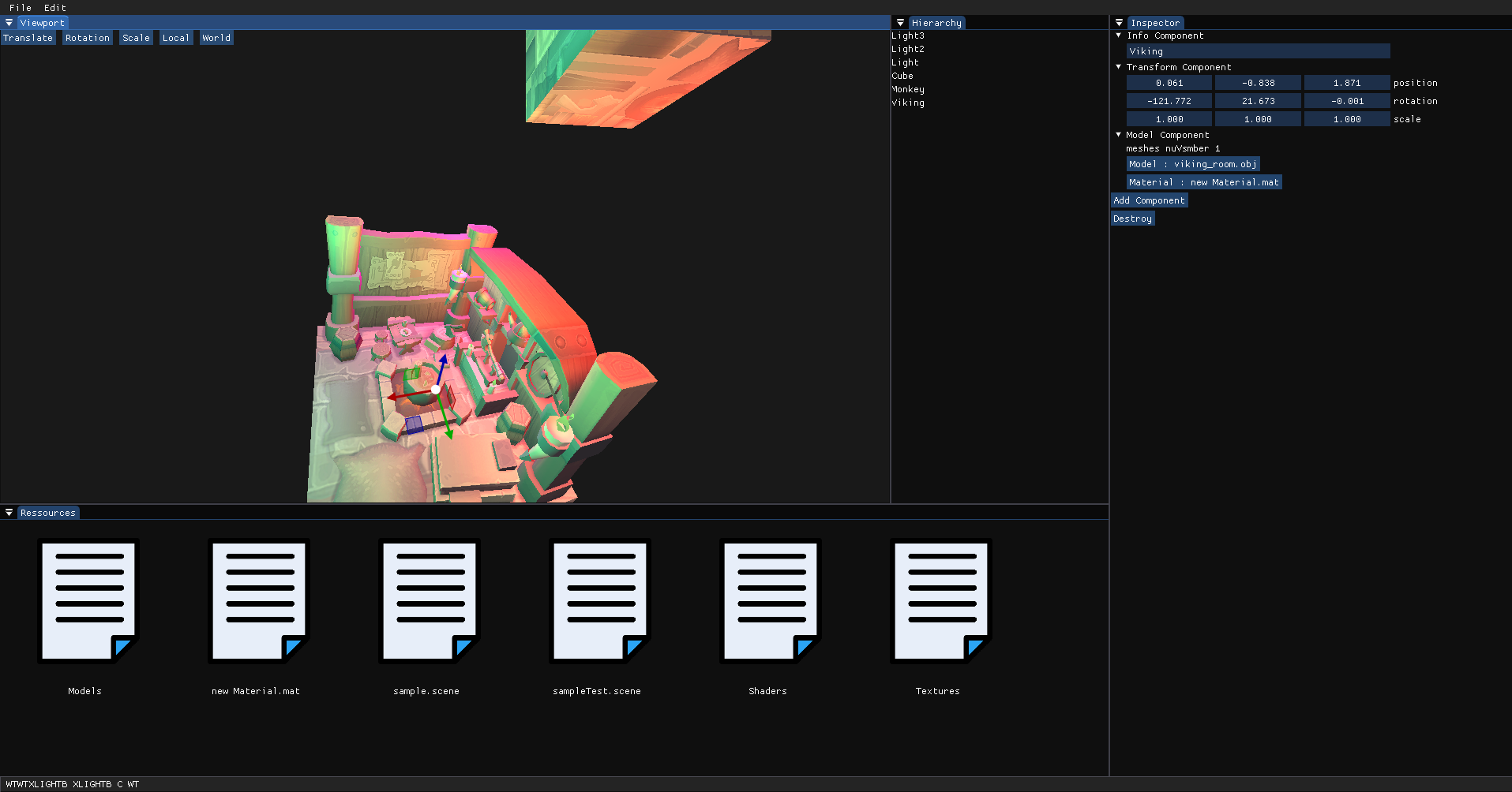 This is my first C project. I learned memory management by creating different memory allocators and multiple data structures from scratch. I also could learn Vulkan pipeline. It was also the occasion to make my own game math library (also in C) witch uses some compilation trick to make it user friendly. There is also a docking system made from scratch (it only work from code tho).