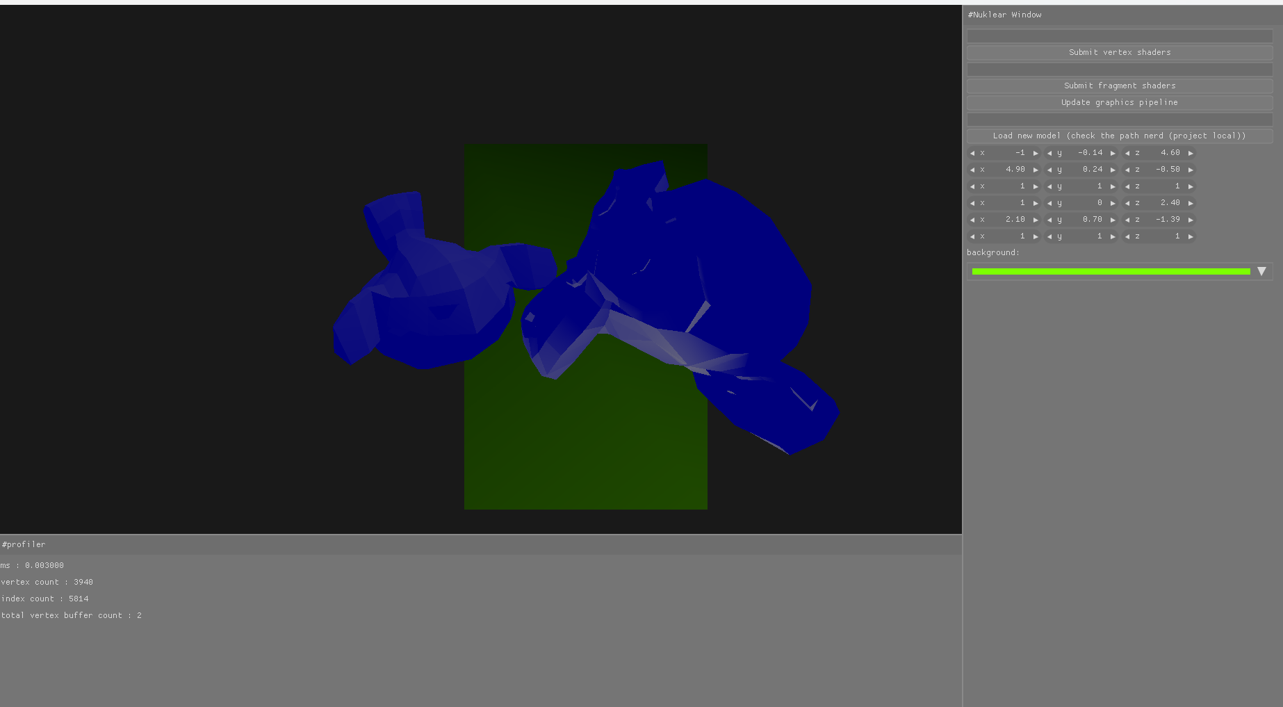 This is my first C project. I learned memory management by creating different memory allocators and multiple data structures from scratch. I also could learn Vulkan pipeline. It was also the occasion to make my own game math library (also in C) witch uses some compilation trick to make it user friendly. There is also a docking system made from scratch (it only work from code tho).